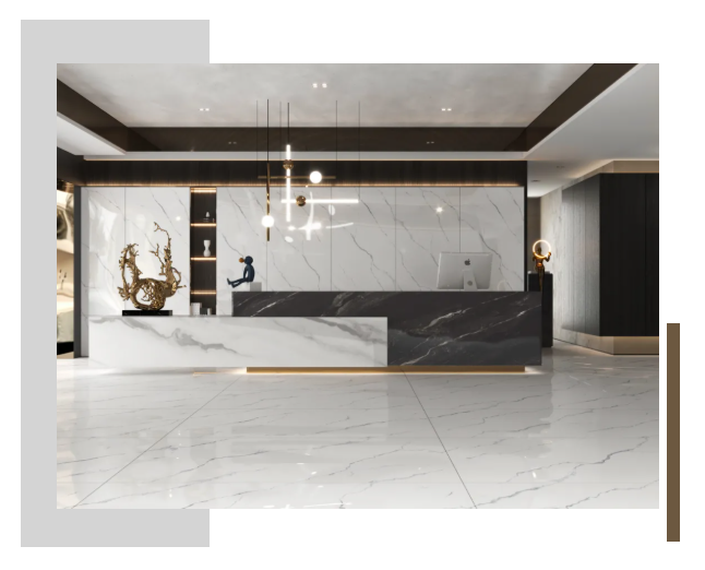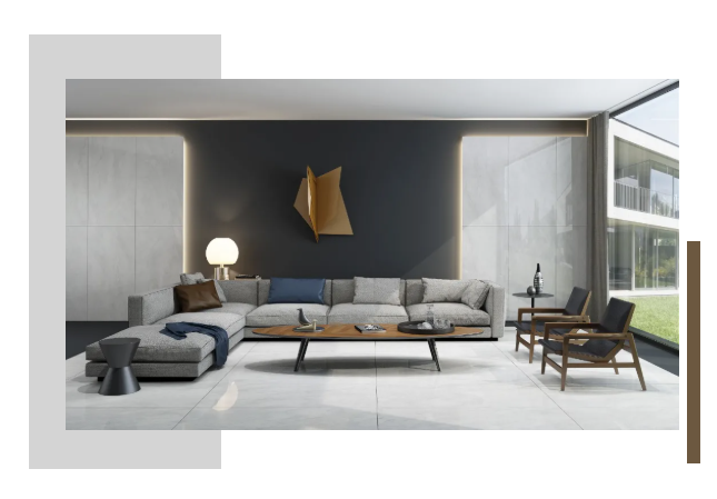視覺上更加修長,750X1500MM置於空間中不斷延伸,讓整個空間“麵積”倍增的同時,簡化了家居繁瑣的裝飾,鋪設風格大方自然,提升空間時尚感。