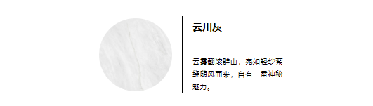 【雲川灰】色如煙雲縹緲,紋理豐富而深邃,恰似雨後的長白山,山色空濛,一明一暗間,碰撞出空靈與清冷的氣質。