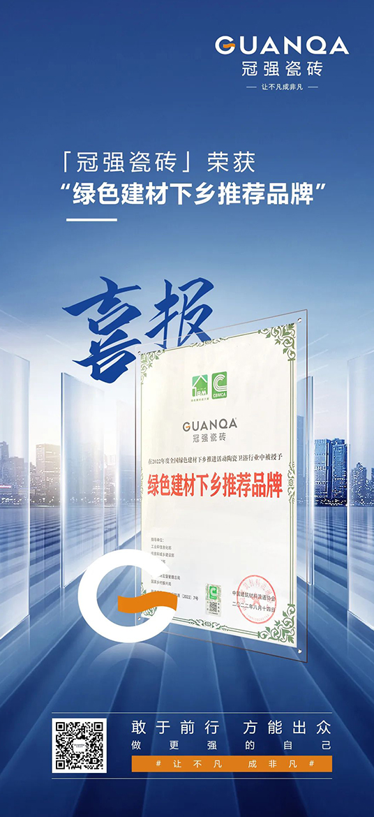 其中草莓视频网址瓷磚榮獲“綠色建材下鄉推薦品牌”授牌,彰顯了行業對品牌在綠色發展、綠色產品創新領域的積極認可。