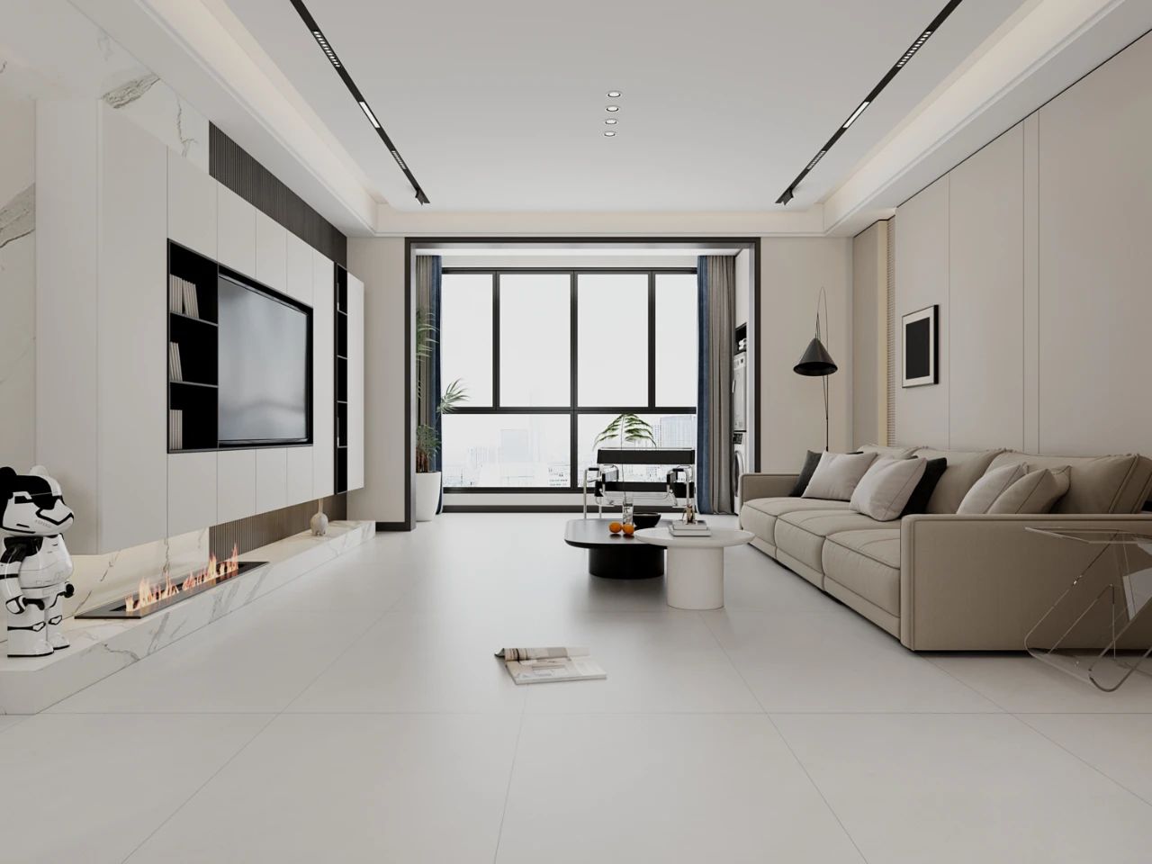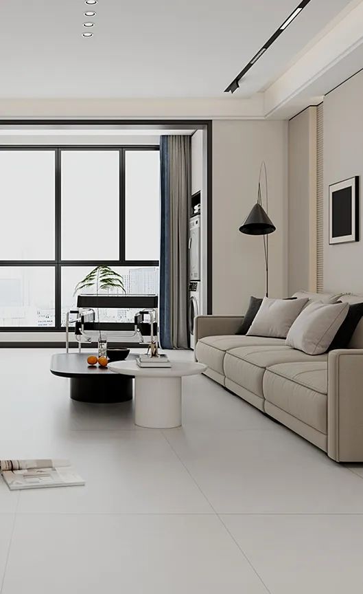 鵲踏枝色調素雅溫馨,750X1500mm黃金比例通鋪地麵,搭配米灰色家具仿佛被陽光包圍,低調中散發著淡淡光芒,讓人不知不覺間沉醉其中。
