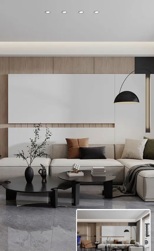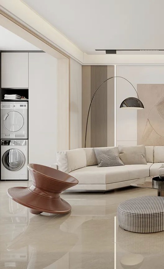 大麵積陽光散落於客廳,與不同肌理的材質互相交融,將光感美學融入其中,襯托出居者的獨特品味。